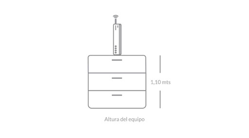 La mejor ubicación para tu módem WiFi debe ser un lugar despejado y lo más alto posible. La altura recomendada es entre 1 y 1,5 metros del piso para optimizar la cobertura de tu servicio.